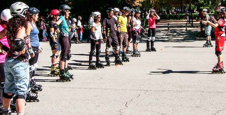 O que é: Encontro/Aula de patinação Inline realizado no parque sob supervisão de um professor para ensinamento de técnicas e manobras.